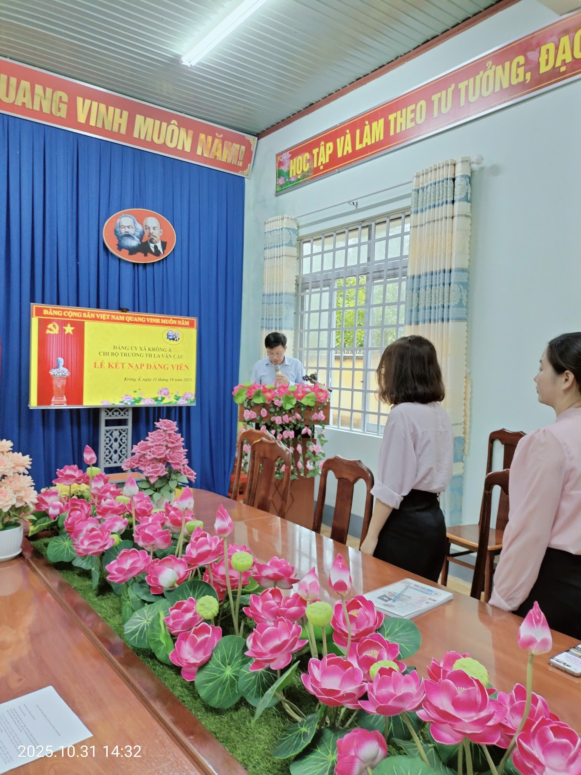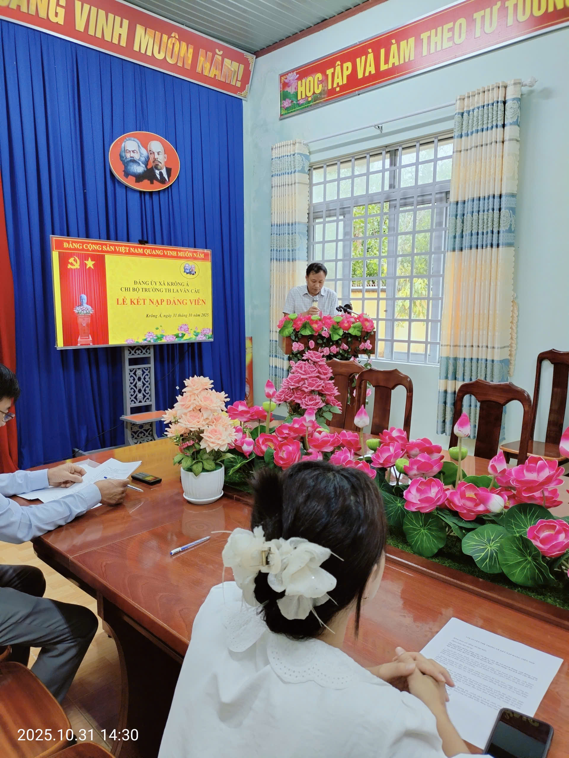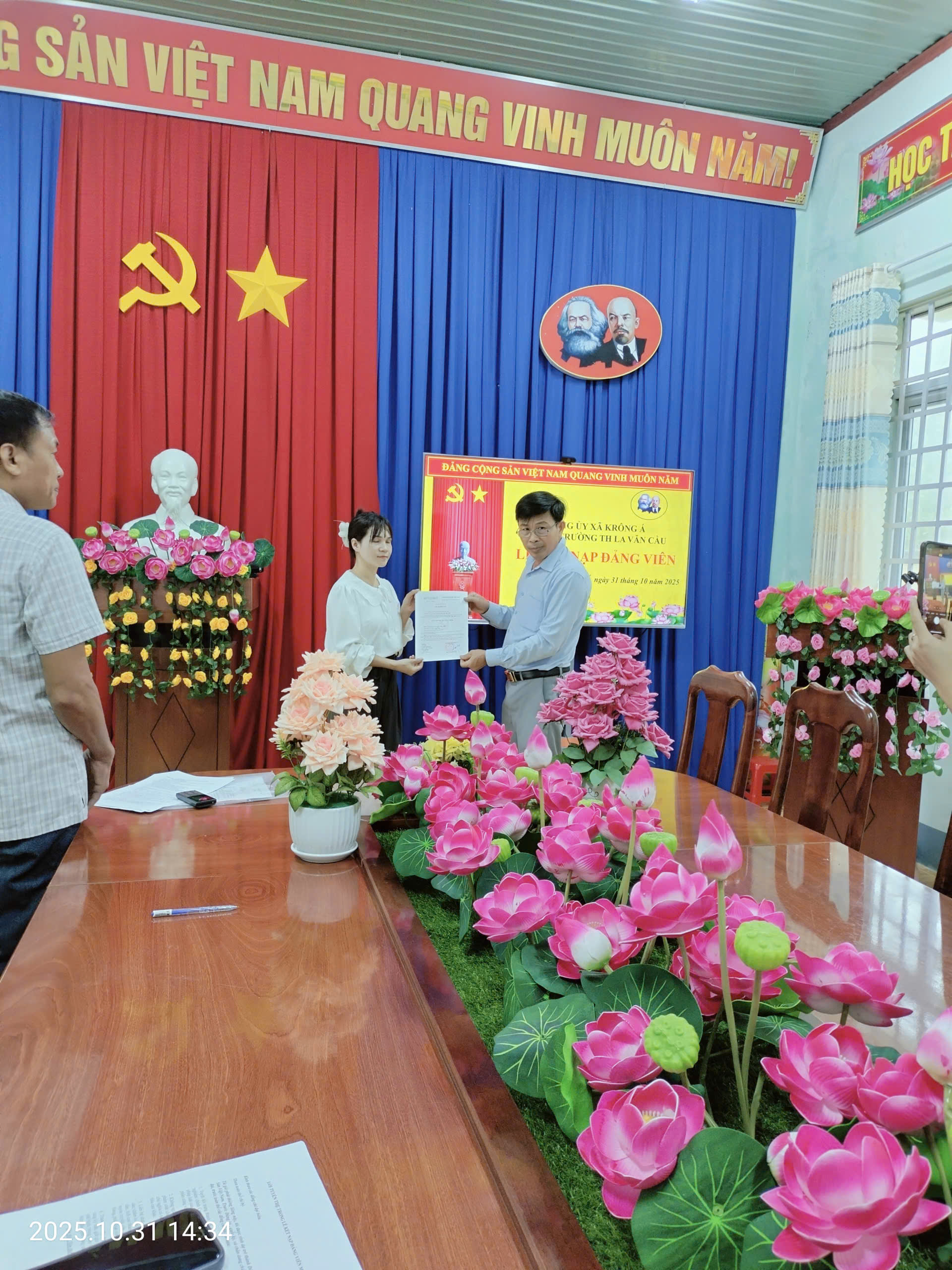 Chi bộ Trường TH La Văn Cầu vinh dự có mặt trong buổi lễ kết nạp Đảng viên mới, một sự kiện quan trọng của chi bộ, đánh dấu sự trưởng thành và cống hiến của các đồng chí được đứng trong hàng ngũ của Đảng. Với sự kiện này, đồng chí H May Mlô sẽ chính thức bước vào một hành trình mới, vừa là niềm vinh dự lớn lao, vừa là trách nhiệm nặng nề đối với Đảng và Nhân dân.